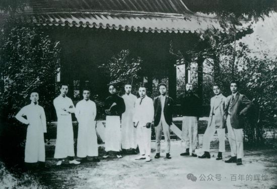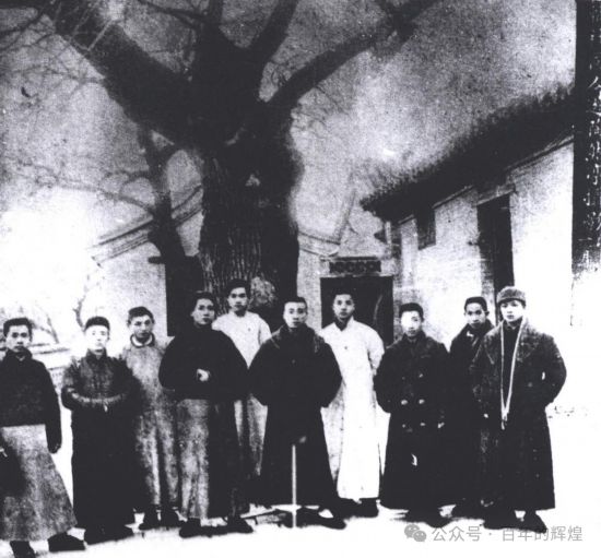 毛澤東(左四)在北京陶然亭慈悲庵與鄧中夏(左五)等人的合影