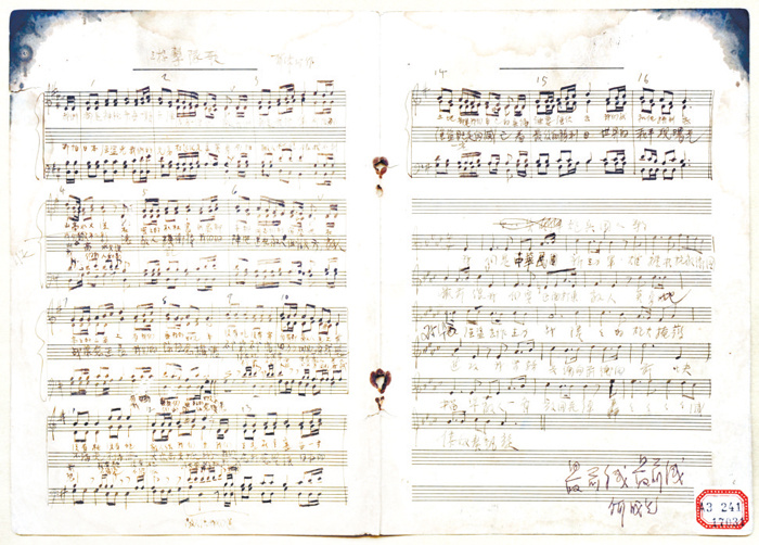 1937年賀綠汀創(chuàng)作的《游擊隊(duì)歌》手稿(中共一大紀(jì)念館藏)
