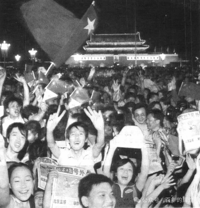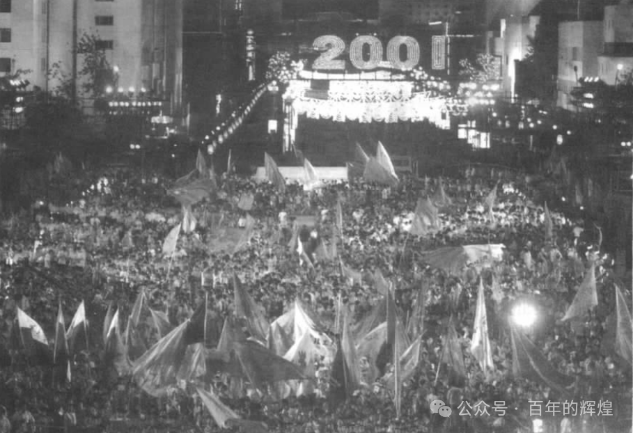 各界群眾在中華世紀壇慶賀北京申奧成功