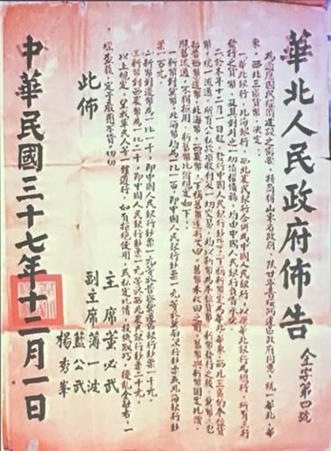 中共中央決定成立華北財經(jīng)辦事處,統(tǒng)一各解放區(qū)的財經(jīng)政策,董必武被任命為辦事處主任,而他首要的任務(wù)就是籌建中央財政及銀行。
