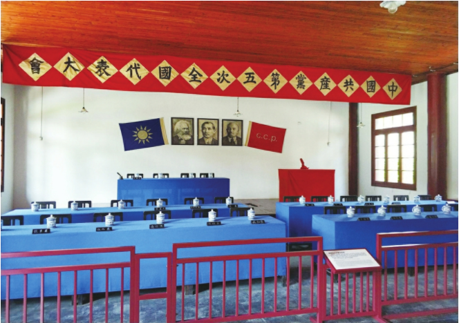 黃陂會館是一棟長方形的建筑物,一頭開著大門,一頭立著三開間平房,中間的大廳布置成會場,左邊房間是大會秘書處辦公、油印文件的地方,右邊的房間空著。大廳至大門隔著一個長方形的院子,當中一條石子路,兩旁是草地,草地外是圍墻。大門外的兩間房子住著幾位衛(wèi)士,保衛(wèi)大會的安全。