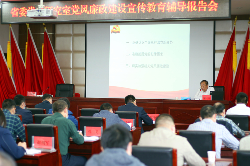 為進(jìn)一步深化黨風(fēng)廉政建設(shè)宣傳教育月活動(dòng),推進(jìn)清廉機(jī)關(guān)建設(shè),10月8日,省委黨史研究室邀請(qǐng)省紀(jì)委監(jiān)委派駐省委辦公廳紀(jì)檢監(jiān)察組組長(zhǎng)童江作專題輔導(dǎo)報(bào)告。省委黨史研究室主任何光耀主持報(bào)告會(huì)并講話,室領(lǐng)導(dǎo)班子成員和全室黨員干部職工參加報(bào)告會(huì)。