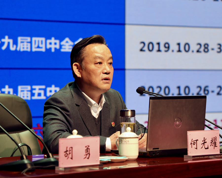 何光耀指出,黨的十九屆六中全會是在黨和國家事業(yè)發(fā)展的重大歷史關(guān)頭召開的一次重要會議,具有劃時代、里程碑意義。學(xué)習(xí)宣傳貫徹十九屆六中全會精神是全黨當(dāng)前和今后一個時期的重大政治任務(wù)。