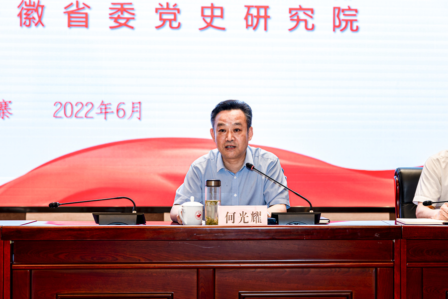研討會由中央黨史和文獻研究院第七研究部、安徽省委宣傳部、安徽省委黨史研究院聯(lián)合主辦。中央黨史和文獻研究院副院長、中央編譯局局長柴方國作視頻講話,安徽省委常委、宣傳部部長郭強出席并講話。省委黨史研究室主任何光耀應邀出席會議并作主旨發(fā)言。中央黨史和文獻研究院第七研究部,鄂豫皖三省黨史和文獻部門等單位負責同志參加會議。