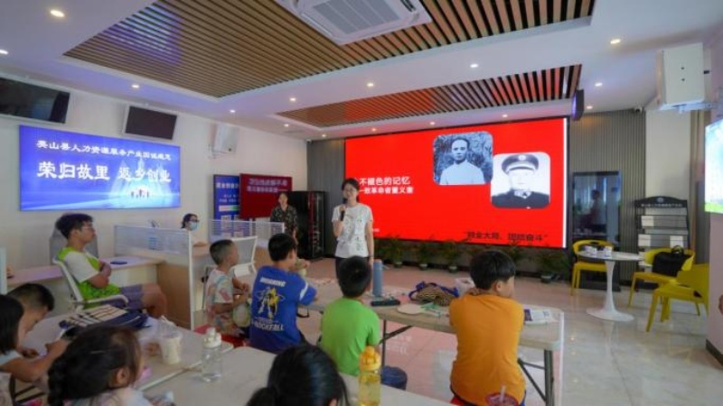 8月5日,英山縣史志研究中心和縣思源實驗學校4名紅色宣講員走進縣電子商務(wù)創(chuàng)業(yè)園愛心托管班教室,為近百名青少年兒童講授一堂生動的紅色“思政課”。