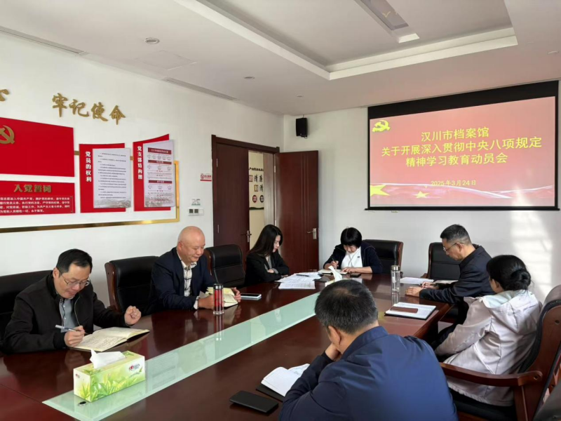 3月24日,漢川市檔案館(史志研究中心)召開深入貫徹中央八項規(guī)定精神學(xué)習(xí)教育動員部署會,會議傳達(dá)學(xué)習(xí)漢川市深入貫徹中央八項規(guī)定精神學(xué)習(xí)教育實(shí)施方案,部署市檔案館(史志研究中心)深入貫徹中央八項規(guī)定精神學(xué)習(xí)教育工作。