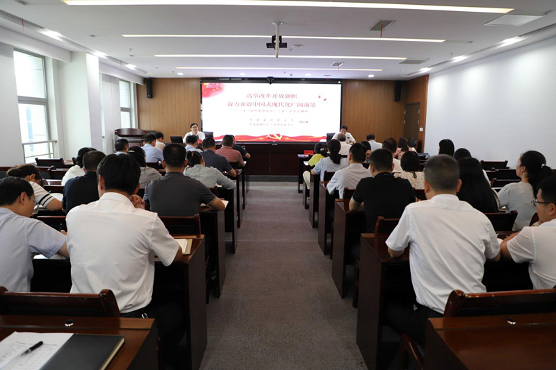 陽以誠(chéng)以《高舉改革開放旗幟,奮力開辟中國(guó)式現(xiàn)代化廣闊前景》為題,從深刻領(lǐng)悟全會(huì)重大意義、準(zhǔn)確把握進(jìn)一步全面深化改革的目標(biāo)任務(wù)、凝心聚力推動(dòng)改革任務(wù)落實(shí)等方面,對(duì)黨的二十屆三中全會(huì)精神作了系統(tǒng)宣講和闡釋,并結(jié)合襄陽市直機(jī)關(guān)黨的建設(shè)工作實(shí)際對(duì)貫徹落實(shí)黨的二十屆三中全會(huì)精神提出具體要求。