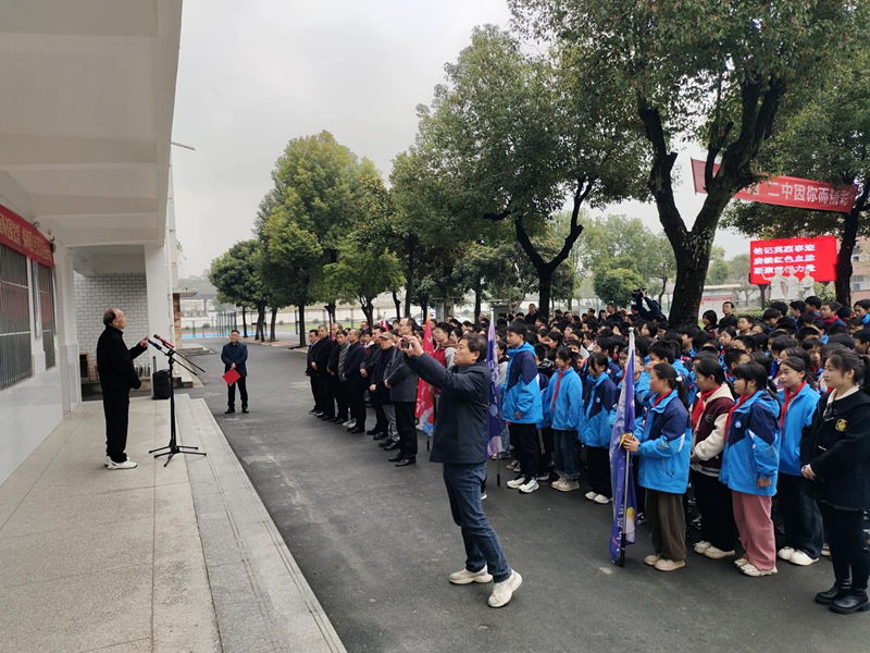 “我宣布,傅春泉烈士革命事跡展覽館揭牌!”11月19日,谷城縣盛康鎮(zhèn)“傅春泉烈士革命事跡展覽館揭牌暨紅色思政課進校園活動”在盛康鎮(zhèn)第二初級中學(xué)舉行。出席此次活動的有縣老促會、縣檔案館(縣史志研究中心)、縣退役軍人事務(wù)局、縣教育局、盛康鎮(zhèn)等單位負責同志,以及傅春泉烈士遺屬代表、三官廟村、鎮(zhèn)中心學(xué)校和第二初級中學(xué)師生等共計200余人。