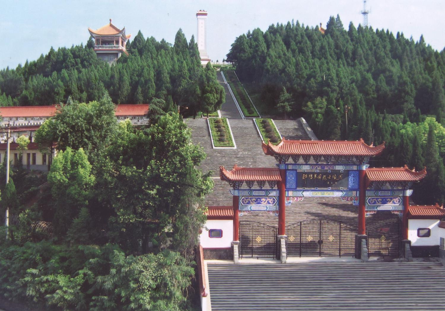 鄖縣地處鄂西北,地跨漢水南北,地勢顯要,是兵家必爭之地。新民主主義革命時期,在黨的領導下,鄖陽相繼有4萬多人參軍參戰(zhàn),2000多人壯烈犧牲。鄖陽革命烈士陵園始建于1950年,由原中共鄖縣縣委、鄖陽專員公署、鄖陽軍分區(qū)為悼念解放鄖陽而犧牲的烈士所建造的。原址坐落于鄖縣老城滄浪山(又名虎山)。1951年7月1日落成,占地25畝,建筑面積10畝,東西長400米,南北寬125米。主體建筑有三層磚木結(jié)構的六角形主亭,層層豎有鐫刻褒揚烈士之文和烈士英名的大理石石碑。南北輔亭各一,對稱豎立刻有烈士英名的石碑,主亭正前方有仿古精雕牌坊,牌坊書“鄖陽烈士陵園”六個大字,主亭前的映壁上仿書毛澤東題詞“生的偉大,死的光榮”,園內(nèi)綠蔭夾道,百花爭艷。主亭頂部塑身著綠軍裝、持槍遠眺的人民解放軍戰(zhàn)士的全身塑像一尊。1978年,因丹江口水庫蓄水后,南碑地勢下陷。1979年,經(jīng)報請湖北省人民政府批準,將陵園遷建于新城正北部楊家?guī)X。新鄖陽革命烈士陵園依山而建,占地100多畝,現(xiàn)主體建筑有革命烈士紀念碑、紀念碑亭、楊獻珍紀念亭、革命史陳列館、影像館和東西仿古四角亭,附屬建筑物有覽鷹園、護陵墻等。其中紀念碑為鋼筋混凝土磚石結(jié)構,略呈正四棱臺型,碑身高24.8米,石碑,鐫刻著各個革命時期犧牲的1609位烈士英名,館內(nèi)還存放著中共鄖陽地委、鄖陽行署、鄖陽軍分區(qū)、鄖陽地直機關、中共鄖縣縣委、鄖縣人民政府和各界群眾團體進獻的匾額23塊。在仿古碑亭長廊里,篆刻著二七大罷工領導之一的施洋烈士,鄖縣籍共產(chǎn)黨員、百色起義組織者、紅8軍政治部主任何世昌。陳列室29塊展板上詳記著丹江口、鄖縣、鄖西、房縣、竹山、竹溪等縣市革命斗爭史,是十堰市史料最完備、囊括面最廣的革命史館。