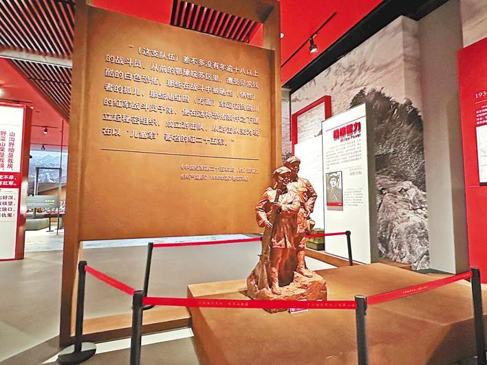 紅二十五軍長征集結(jié)革命歷史展一角的小紅軍戰(zhàn)士塑像,紅二十五軍以“兒童軍”著名。 (湖北日報全媒記者 龔雪 攝)