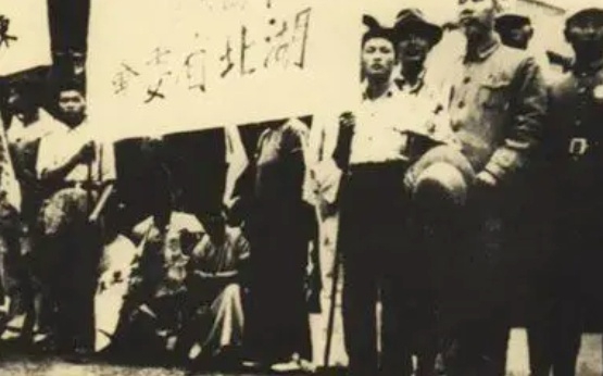董必武(右二)率中共湖北省委人員參加抗日游行活動(dòng)