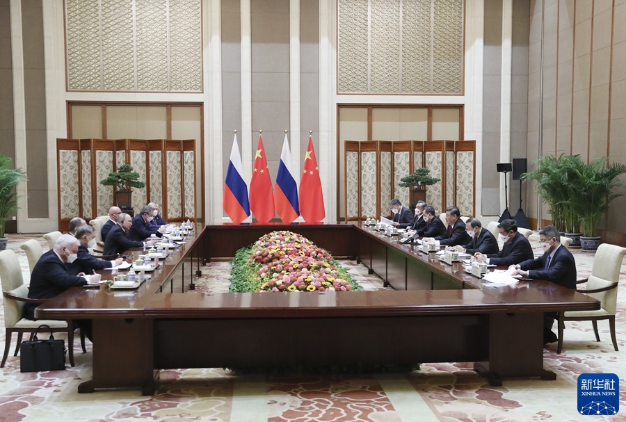 新華社北京2月4日電(記者溫馨)國(guó)家主席習(xí)近平2月4日下午在北京釣魚(yú)臺(tái)國(guó)賓館同俄羅斯總統(tǒng)普京舉行會(huì)談。兩國(guó)元首在熱烈友好的氣氛中就中俄關(guān)系以及事關(guān)國(guó)際戰(zhàn)略安全穩(wěn)定的一系列重大問(wèn)題深入充分交換了意見(jiàn)。