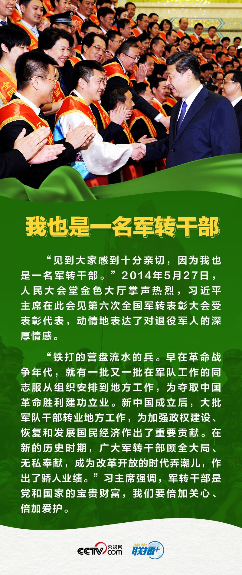 退役與現(xiàn)役是軍人人生的不同階段,無論是穿著軍裝為國家保駕護航,還是脫下軍裝為夢想打拼,都值得全社會尊崇!央視網(wǎng)《聯(lián)播+》特推出海報,為您講述習(xí)主席與退役軍人之間的溫暖故事。