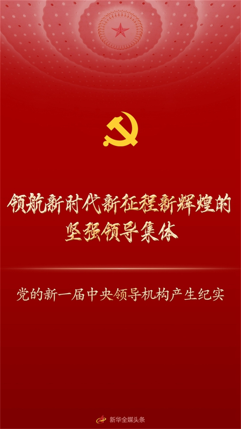 新華社北京10月24日電 題:領(lǐng)航新時(shí)代新征程新輝煌的堅(jiān)強(qiáng)領(lǐng)導(dǎo)集體——黨的新一屆中央領(lǐng)導(dǎo)機(jī)構(gòu)產(chǎn)生紀(jì)實(shí)