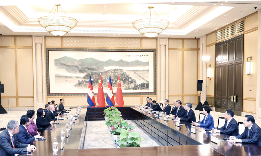 習(xí)近平強(qiáng)調(diào),今年是我提出親誠惠容理念10周年。中柬關(guān)系集中體現(xiàn)了這一理念以及中國堅(jiān)持與鄰為善、以鄰為伴的周邊外交方針。中國支持柬埔寨走符合本國國情的發(fā)展道路,支持柬埔寨實(shí)現(xiàn)穩(wěn)定和發(fā)展,支持柬埔寨在國際和地區(qū)舞臺(tái)發(fā)揮重要作用。雙方要保持高層交往,深化互利合作,扎實(shí)推進(jìn)“鉆石六邊”合作架構(gòu),推動(dòng)“工業(yè)發(fā)展走廊”和“魚米走廊”建設(shè)盡快取得可視成果,服務(wù)各自國家現(xiàn)代化事業(yè)。雙方要持續(xù)推進(jìn)教育、文化、青年等領(lǐng)域交流合作,讓中柬友好更加深入人心。