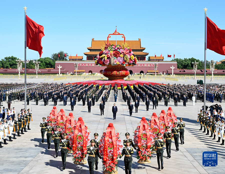 9月30日上午,黨和國(guó)家領(lǐng)導(dǎo)人習(xí)近平、李強(qiáng)、趙樂際、王滬寧、蔡奇、丁薛祥、李希、韓正等來到北京天安門廣場(chǎng),出席烈士紀(jì)念日向人民英雄敬獻(xiàn)花籃儀式。新華社記者 謝環(huán)馳 攝