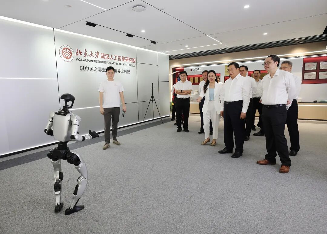 北京大學武漢人工智能研究院是由北京大學、武漢市、東湖高新區(qū)共建的新型研發(fā)機構(gòu),致力于“數(shù)字智能”“社會模擬”和“具身智能”研究。王忠林走進研究院,察看人形機器人最新研發(fā)成果和大型社會模擬器情景演示,與研究院首席科學家朱松純等科技工作者親切交流。王忠林對研究院依托人工智能先進技術(shù),打造東湖高新區(qū)全國首個社區(qū)級“天—地—人”協(xié)同治理模式給予充分肯定,希望研究院積極推進教育科技人才一體化發(fā)展平臺建設,構(gòu)建開放共享技術(shù)生態(tài),推動人工智能技術(shù)更好賦能智慧醫(yī)療、智慧交通、地災防治等領(lǐng)域,為社會治理提供有力決策支持。