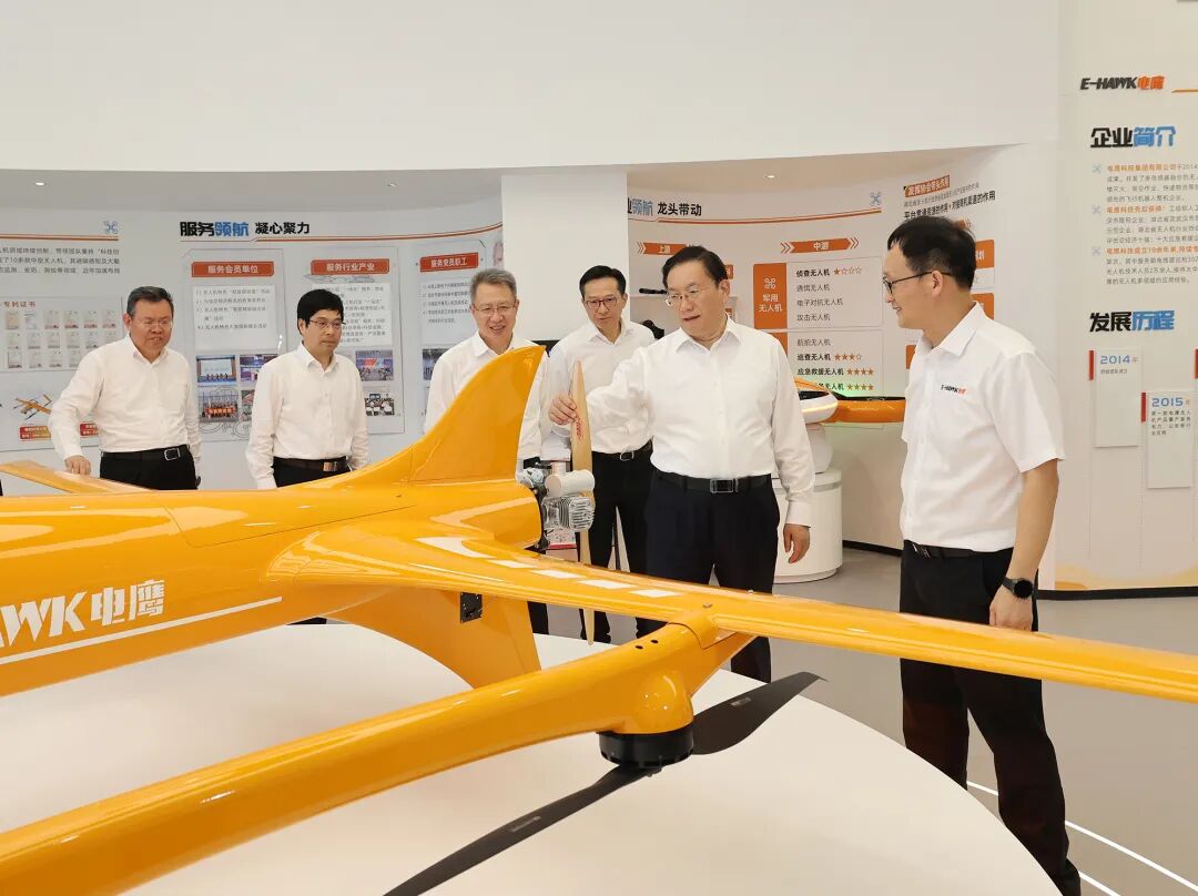 電鷹科技有限公司是一家專注于中大型AI無人機(jī)系統(tǒng)研發(fā)生產(chǎn)、應(yīng)用服務(wù)及技能培訓(xùn)的高新技術(shù)企業(yè),主要產(chǎn)品包括物流無人機(jī)、工業(yè)級垂直起降無人機(jī)、電動垂直起降飛行器等。王忠林來到企業(yè),察看產(chǎn)品展示和無人機(jī)載重、滅火、物流演示,聽取企業(yè)研發(fā)、生產(chǎn)情況介紹,和企業(yè)負(fù)責(zé)人親切交流、征求意見建議。“低空經(jīng)濟(jì)企業(yè)做大規(guī)模,開拓市場是基礎(chǔ)。”王忠林叮囑省、市有關(guān)部門加強跟蹤服務(wù)和政策支持,積極搭建“出�!狈⻊�(wù)平臺,幫助無人機(jī)制造企業(yè)開辟國際市場,實現(xiàn)更快更好發(fā)展。