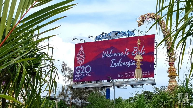 △巴厘島大街上的峰會(huì)宣傳展板。(總臺(tái)央視記者韓銳拍攝)