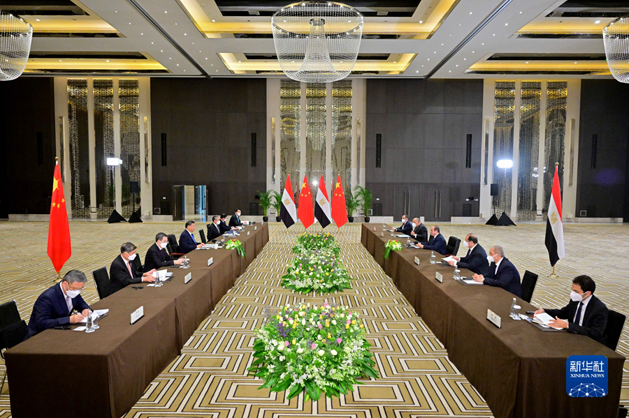 習(xí)近平強(qiáng)調(diào),中方堅定支持埃及走符合自身國情的發(fā)展道路,堅定支持埃及維護(hù)國家主權(quán)、安全、發(fā)展利益,愿同埃方深化共建“一帶一路”合作,推動如期高質(zhì)量建成“齋月十日城”市郊鐵路和新行政首都中央商務(wù)區(qū),實施好“中埃蘇伊士經(jīng)貿(mào)合作區(qū)”等重大合作項目。中方愿從埃及進(jìn)口更多優(yōu)質(zhì)產(chǎn)品,擴(kuò)大投融資、疫苗聯(lián)合生產(chǎn)、航天等領(lǐng)域合作。雙方要推進(jìn)魯班工坊和中文教學(xué),培養(yǎng)更多中埃友好的使者。中方愿同埃方以首屆中阿峰會為契機(jī),攜手構(gòu)建中阿命運共同體,就落實中非合作論壇“九項工程”加強(qiáng)對接。中方祝賀埃及成功舉辦聯(lián)合國氣候變化沙姆沙伊赫大會,愿在能源轉(zhuǎn)型、綠色產(chǎn)業(yè)、低碳技術(shù)等方面加強(qiáng)交流合作。中方愿同埃方加強(qiáng)在聯(lián)合國等多邊平臺合作,倡導(dǎo)真正的多邊主義,維護(hù)國際關(guān)系基本準(zhǔn)則,維護(hù)發(fā)展中國家共同利益,共同促進(jìn)世界和地區(qū)和平穩(wěn)定。