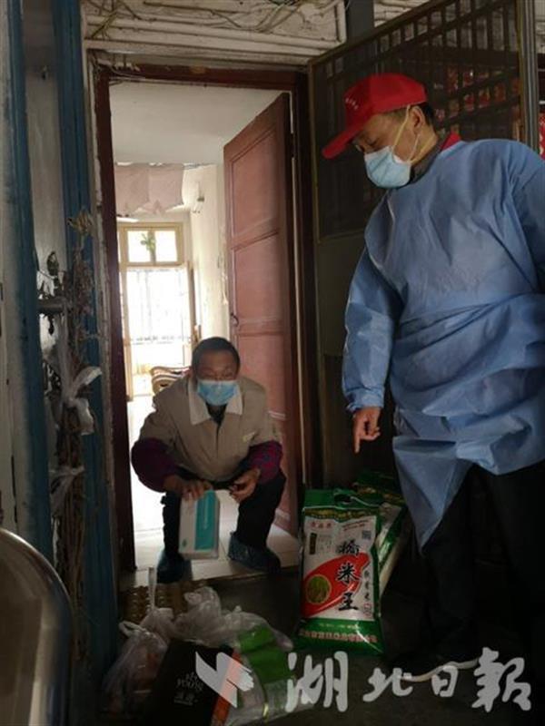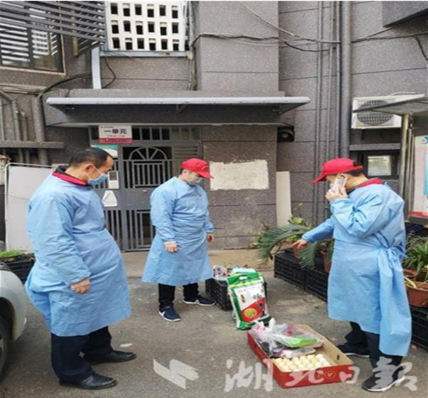 湖北省委黨史研究室下沉工作隊(duì)干部、第四網(wǎng)格網(wǎng)格員閆清敏當(dāng)天得知了情況,立即與朱芳取得聯(lián)系,核對(duì)購(gòu)買(mǎi)物資清單,然后帶領(lǐng)3名工作隊(duì)員前往取貨地點(diǎn),肩扛手提將生活物資搬運(yùn)上六樓。