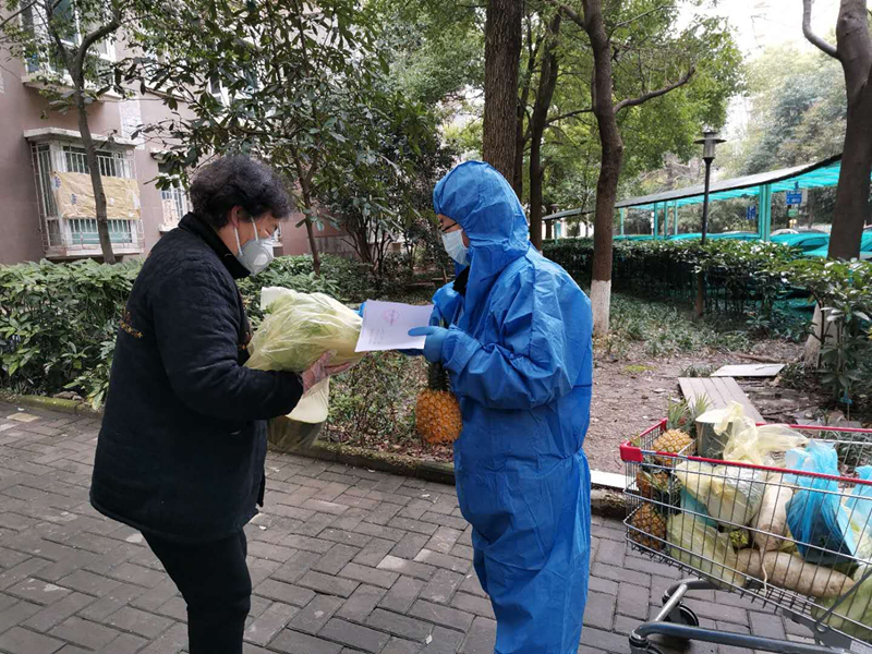 工學(xué)部社區(qū)工作隊(duì)聯(lián)系愛心蔬菜并發(fā)放