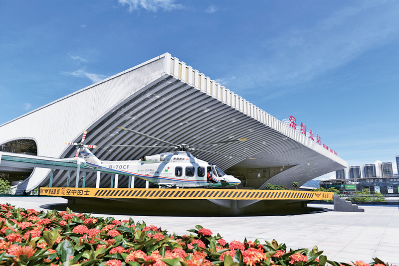 發(fā)展通用航空和低空經(jīng)濟是進一步全面深化改革的重要部署。圖為2024年6月28日,直升機在深圳北站旁的停機坪等待起飛。當(dāng)日,由深鐵集團和東部通航合作共建的首個“低空+軌道”空鐵聯(lián)運項目在深圳北站樞紐東廣場正式開航,將為旅客提供深圳空鐵交通一站式接駁服務(wù)。 新華社記者 毛思倩/攝