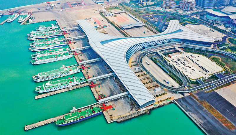 近年來,我國全面深化改革開放,實施自由貿(mào)易試驗區(qū)提升戰(zhàn)略,22個自由貿(mào)易試驗區(qū)和海南自由貿(mào)易港建設(shè)蓬勃展開。圖為2023年11月29日拍攝的海口新海滾裝碼頭客運綜合樞紐站項目,是海南自貿(mào)港封關(guān)運作的重要配套設(shè)施。 新華社記者 郭程/攝