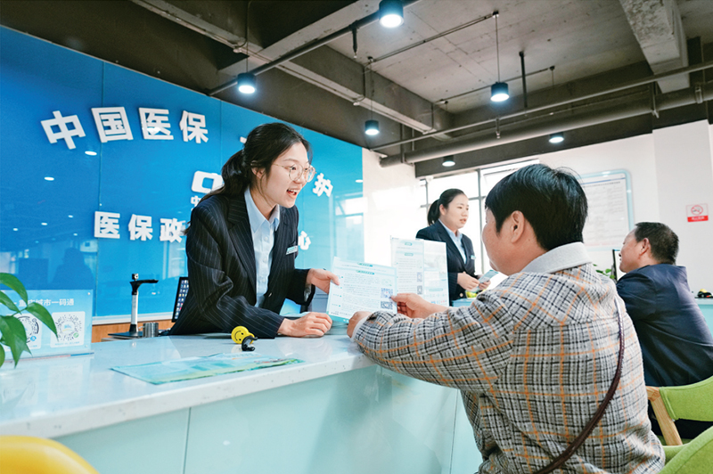 全面深化改革不斷回應(yīng)人民新期盼、滿足群眾新需求,人民利益、百姓福祉在國家發(fā)展中有了更多保障。截至2023年底,全國基本醫(yī)療保險覆蓋13.3億人。圖為2023年11月1日,在重慶市北碚區(qū)歇馬街道醫(yī)保政務(wù)服務(wù)分中心,工作人員給居民講解醫(yī)保政策。 新華社發(fā) 秦廷富/攝
