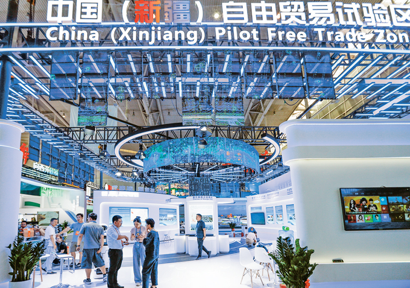 建設自由貿易試驗區(qū)是新時代推進改革開放的重要戰(zhàn)略舉措,在我國改革開放進程中具有里程碑意義。10多年來,我國自由貿易試驗區(qū)持續(xù)加強制度集成創(chuàng)新,以開放促改革、促發(fā)展。圖為2024年6月25日,在第八屆中國—亞歐博覽會拍攝的中國(新疆)自由貿易試驗區(qū)展臺。 新華社記者 陳朔/攝