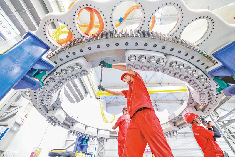 黨的二十屆三中全會強(qiáng)調(diào)要建設(shè)一流產(chǎn)業(yè)技術(shù)工人隊伍。產(chǎn)業(yè)工人是工人階級的主體力量,各級工會要更好團(tuán)結(jié)動員廣大職工為進(jìn)一步全面深化改革、推進(jìn)中國式現(xiàn)代化作貢獻(xiàn)。圖為2024年7月23日,河北省隆化縣一家風(fēng)電設(shè)備企業(yè)的工人在車間工作。 新華社發(fā) 李秀清/攝