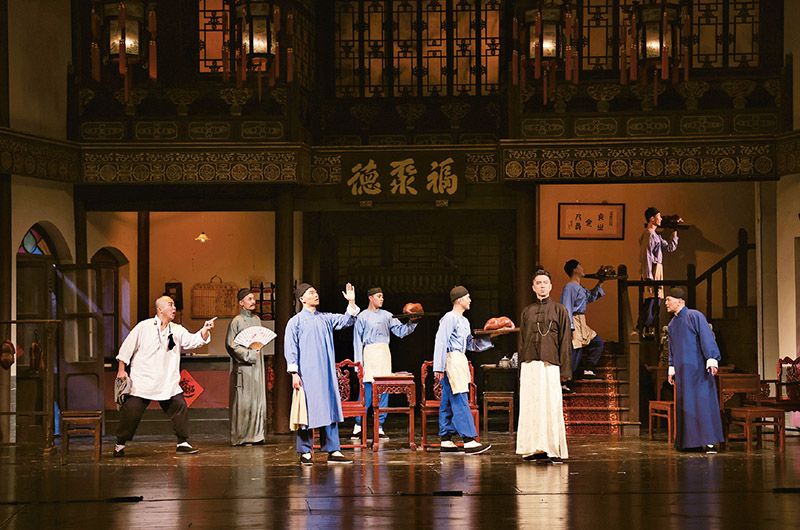 2024年6月28日至7月10日,北京人藝京味兒經(jīng)典大戲《天下第一樓》重張上演,邀新老“顧客”再聚老字號(hào)“福聚德”,品“京師美饌”,解“苦辣酸甜”�!短煜碌谝粯恰纷鳛楸本┤怂嚨目醇覒蛑�,自1988年上演至今已36年,是北京人藝京味兒經(jīng)典的代表作之一。圖為該劇劇照。 中國(guó)文聯(lián)供圖
