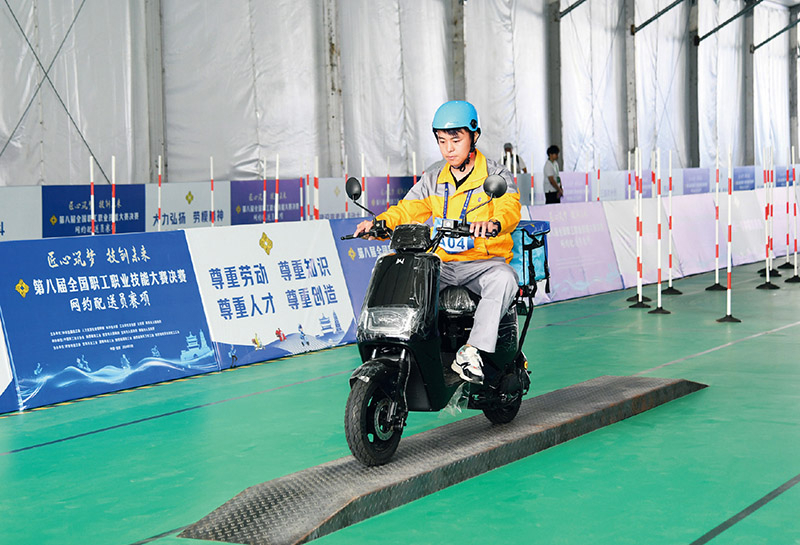 2024年9月11日,由全國總工會、人力資源和社會保障部等單位主辦的第八屆全國職工職業(yè)技能大賽決賽在陜西開幕。近550名選手參加了人工智能訓(xùn)練師、汽車維修工(智能網(wǎng)聯(lián)新能源汽車方向)、網(wǎng)約配送員等6個決賽工種的比賽。圖為決賽開幕當(dāng)日,選手在位于西安國際會展中心的比賽場地參加網(wǎng)約配送員工種比賽。 新華社記者 張博文/攝