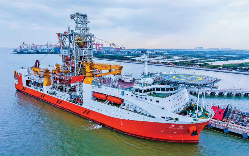 2024年11月17日,擁有最大11000米的鉆深能力、我國(guó)自主設(shè)計(jì)建造的首艘大洋鉆探船“夢(mèng)想”號(hào)在廣州正式入列,標(biāo)志著我國(guó)深海探測(cè)關(guān)鍵技術(shù)裝備取得重大突破。圖為當(dāng)日拍攝的靠泊在廣州海洋地質(zhì)調(diào)查局科考碼頭的大洋鉆探船“夢(mèng)想”號(hào)。 新華社記者 劉大偉/攝