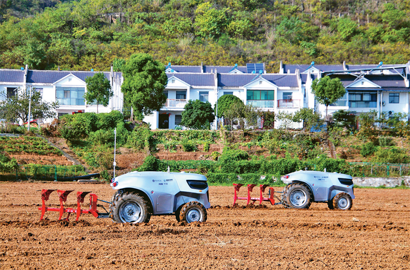 黨的十八大以來,我國農(nóng)機裝備水平和農(nóng)業(yè)機械化水平大幅度提升,大型大馬力農(nóng)機裝備研制取得突破性進展。圖為2024年10月28日,在湖北省十堰市鄖陽區(qū)柳陂鎮(zhèn)臥龍崗村,無人駕駛的智慧農(nóng)機在田間作業(yè)。該農(nóng)機具備數(shù)據(jù)采集、實時追蹤、軌跡查詢等功能,配備相關(guān)農(nóng)具可進行耕、耙、播、收等智能化作業(yè)。 人民圖片 曹忠宏/攝