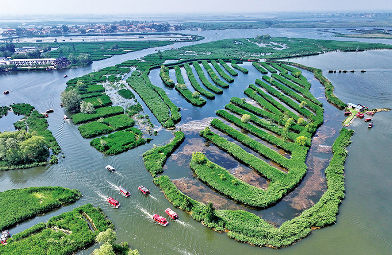通水10年來,南水北調(diào)東、中線一期工程已累計向北方地區(qū)50多條河流生態(tài)補水110多億立方米,助力華北地區(qū)地下水超采綜合治理,推動滹沱河、白洋淀等一大批河湖重現(xiàn)生機(jī)。圖為2024年5月8日,游船在河北雄安新區(qū)白洋淀內(nèi)游覽。 新華社記者 牟宇/攝