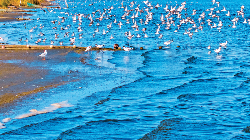 為筑牢海洋生態(tài)保護屏障,我國有關(guān)部門和沿海地區(qū)以美麗海灣建設(shè)為主題主線,推動海洋生態(tài)環(huán)境保護從污染治理為主向海洋環(huán)境、生物生態(tài)協(xié)同治理轉(zhuǎn)變。2023年,全國近海海域優(yōu)良水質(zhì)面積比例達到85%,創(chuàng)歷史新高。海洋生態(tài)質(zhì)量持續(xù)改善,為高質(zhì)量發(fā)展提供了堅實支撐。圖為2024年11月27日,江蘇省東臺市條子泥海灣,大批候鳥在海濱棲息。 人民圖片 孫家錄/攝