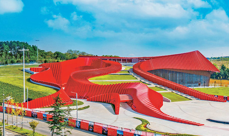 2024年10月22日,緊鄰貴陽龍洞堡國際機場,以長征為主題的全域行浸式數字體驗館——貴州長征文化數字藝術館(紅飄帶)正式運營,成為多彩貴州文旅“第一站”。圖為貴州長征文化數字藝術館(紅飄帶)。貴州省委宣傳部供圖