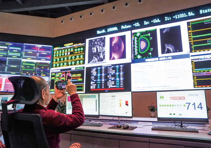 2025年1月20日,我國有“人造太陽”之稱的全超導(dǎo)托卡馬克核聚變實(shí)驗(yàn)裝置(EAST)在安徽合肥創(chuàng)造新世界紀(jì)錄,首次完成1億攝氏度1066秒“高質(zhì)量燃燒”,標(biāo)志我國聚變能源研究實(shí)現(xiàn)從基礎(chǔ)科學(xué)向工程實(shí)踐的重大跨越,對人類加快實(shí)現(xiàn)聚變發(fā)電具有重要意義。圖為1月19日,EAST物理實(shí)驗(yàn)總負(fù)責(zé)人龔先祖在控制大廳監(jiān)測實(shí)驗(yàn)數(shù)據(jù)。 新華社記者 杜宇/攝