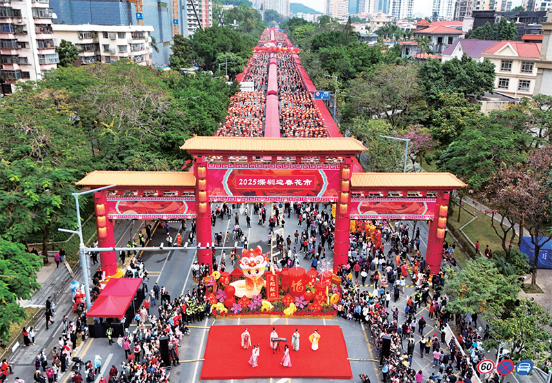 消費(fèi)日益成為拉動(dòng)我國經(jīng)濟(jì)增長的基礎(chǔ)性力量。2025年1月22日,為期一周的2025深圳迎春花市正式開市,各區(qū)花市及購花點(diǎn)檔位總計(jì)約4000個(gè),濃厚的節(jié)日氛圍吸引了眾多市民游客。圖為1月22日,俯瞰深圳羅湖區(qū)愛國路花市圖景。 新華社記者 梁旭/攝