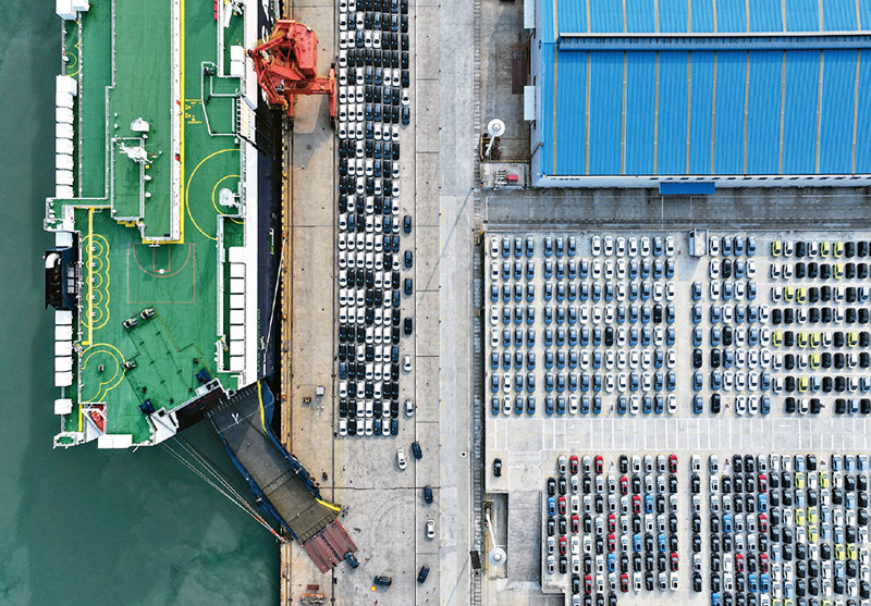 以新能源汽車為代表的“新三樣”成為新時代中國制造靚麗名片。2024年,我國新能源汽車產(chǎn)銷量均突破1200萬輛。2025年1月汽車出口量為47萬輛,其中新能源汽車出口15萬輛,同比增長49.6%。圖為2025年2月21日拍攝的江蘇省連云港港東方港務分公司碼頭裝載出口汽車的場景。 新華社發(fā) 王春/攝