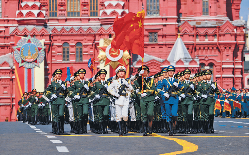 80年前,包括中國、蘇聯(lián)在內(nèi)的全世界正義力量,同仇敵愾、英勇戰(zhàn)斗,并肩打敗了不可一世的法西斯勢(shì)力,取得了正義戰(zhàn)勝邪惡、光明戰(zhàn)勝黑暗、進(jìn)步戰(zhàn)勝反動(dòng)的偉大勝利。圖為2025年5月9日,在俄羅斯首都莫斯科,中國人民解放軍三軍儀仗隊(duì)方隊(duì)參加紀(jì)念蘇聯(lián)偉大衛(wèi)國戰(zhàn)爭(zhēng)勝利80周年慶典閱兵式。 新華社記者 白雪騏/攝
