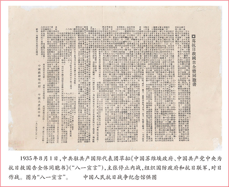 秉持民族大義,凝聚起愛國主義的廣泛共識,構(gòu)筑了團結(jié)一致共御外侮的抗日民族統(tǒng)一戰(zhàn)線。在強敵入侵、民族存亡系于一線之際,能否最大限度地團結(jié)一切可以團結(jié)的力量,是衡量一個政黨愛國主義立場和政治胸懷的試金石。在民族危機空前嚴重、中日民族矛盾成為主要矛盾的關(guān)頭,中國共產(chǎn)黨秉持民族大義,以“兄弟鬩于墻,外御其侮”的博大胸襟,率先倡導(dǎo)并積極推動建立抗日民族統(tǒng)一戰(zhàn)線。從“八一宣言”號召停止內(nèi)戰(zhàn)、一致抗日,到瓦窯堡會議明確提出黨的基本策略任務(wù)是建立廣泛的抗日民族統(tǒng)一戰(zhàn)線,再到和平解決西安事變,中國共產(chǎn)黨從全民族團結(jié)抗日的大局出發(fā),拋棄歷史恩怨,最終推動實現(xiàn)第二次國共合作,為全民族抗戰(zhàn)大局奠定堅實基礎(chǔ)�?谷諔�(zhàn)爭進入戰(zhàn)略相持階段以后,面對國民黨的妥協(xié)動搖,中國共產(chǎn)黨鮮明提出“堅持抗戰(zhàn)、反對投降,堅持團結(jié)、反對分裂,堅持進步、反對倒退”的政治主張,堅持“有理、有利、有節(jié)”的斗爭原則,努力團結(jié)一切要求抗日的力量,使抗日民族統(tǒng)一戰(zhàn)線得到鞏固和發(fā)展。正是這種以民族大義為重、以抗戰(zhàn)大業(yè)為先的愛國情懷,才使黨派、階級、地域、民族的界限得以突破,將一切愛國的力量都緊密團結(jié)在抗日民族統(tǒng)一戰(zhàn)線的旗幟之下,最終形成“四萬萬人齊蹈厲,同心同德一戎衣”的全民族抗戰(zhàn)局面�?谷彰褡褰y(tǒng)一戰(zhàn)線的建立,是中國共產(chǎn)黨將愛國主義從一種精神理念轉(zhuǎn)化為強大政治動員力的偉大創(chuàng)舉,它將中華民族的凝聚力、戰(zhàn)斗力提升到了前所未有的高度。