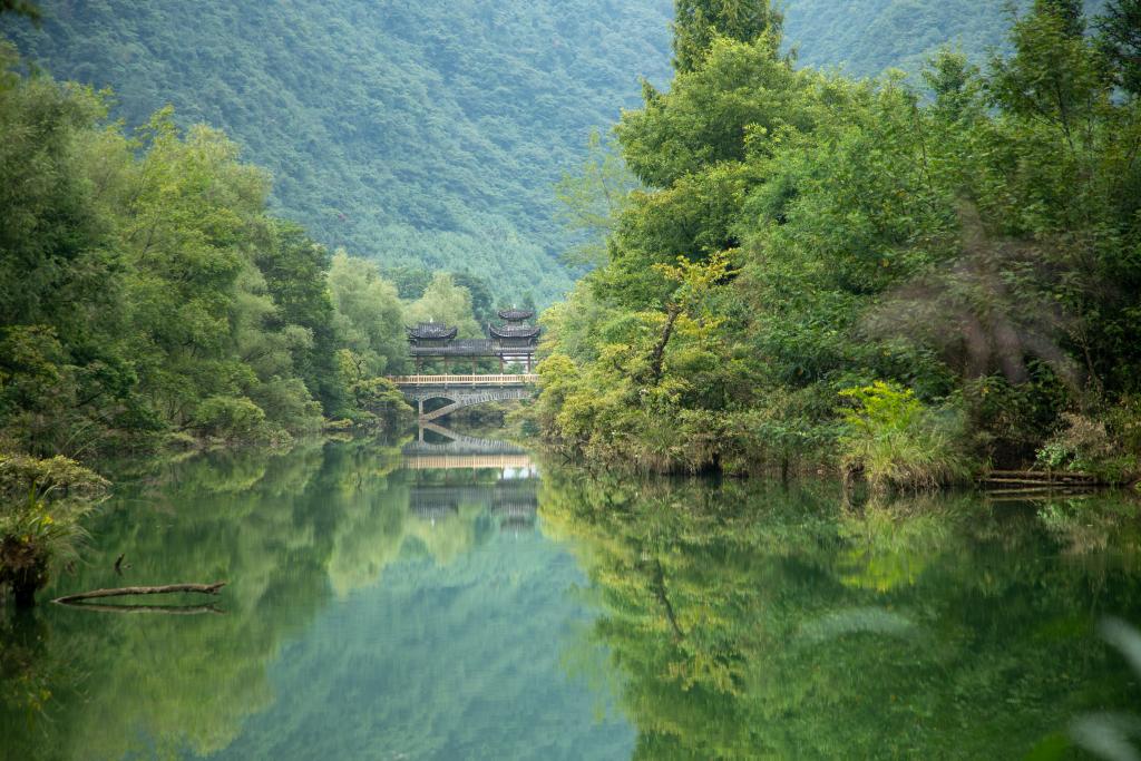 全長50公里的董家河流過董家村,形成了“樹在水中生,水在樹中流”的美景,宛如一幅長軸水彩畫,一棟棟民宿點(diǎn)綴其間。
