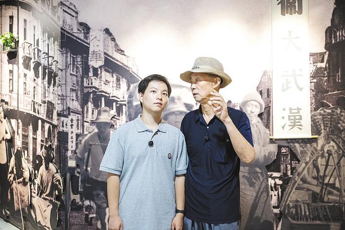 8月13日,孫蔚如將軍之子孫存京攜孫子孫和直,從陜西西安趕到武漢,在受降堂追思抗戰(zhàn)先輩。(湖北日?qǐng)?bào)全媒記者 任勇 攝)
