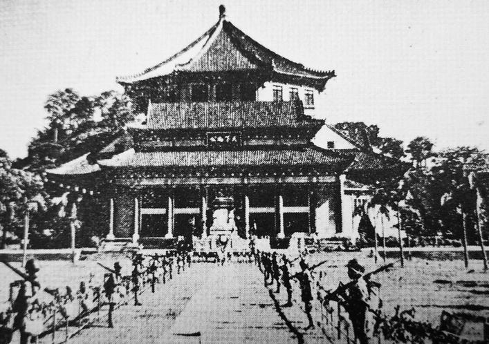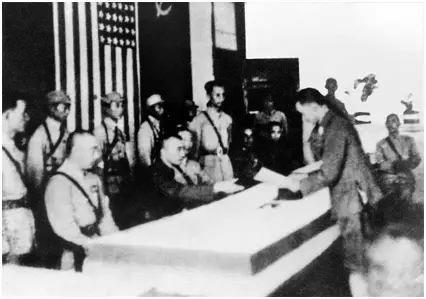 1945年9月9日,侵華日軍投降簽字儀式在這里舉行。當(dāng)日9時(shí),侵華日軍總司令岡村寧次在降書上簽字蓋章,日本投降代表、侵華日軍參謀長(zhǎng)小林淺三郎俯首躬身,向國(guó)民政府遞交降書。