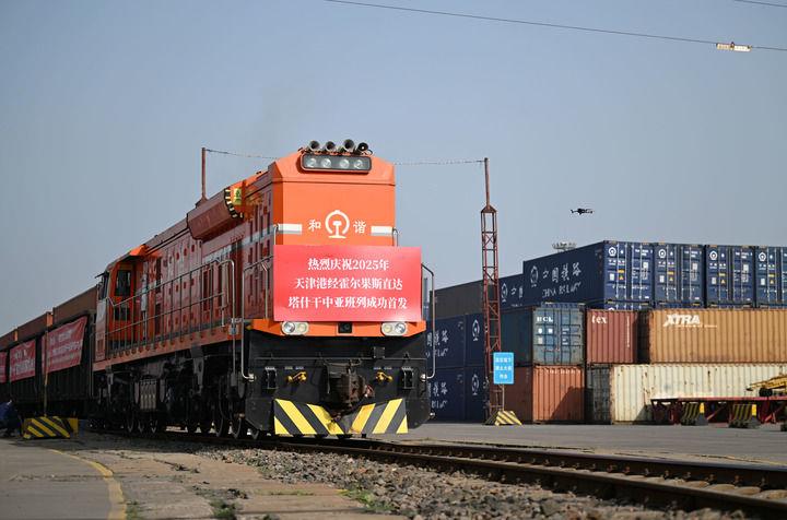 2025年5月20日,2025年首列天津港經(jīng)霍爾果斯直達塔什干的中亞班列從天津港物捷三堆場發(fā)車。