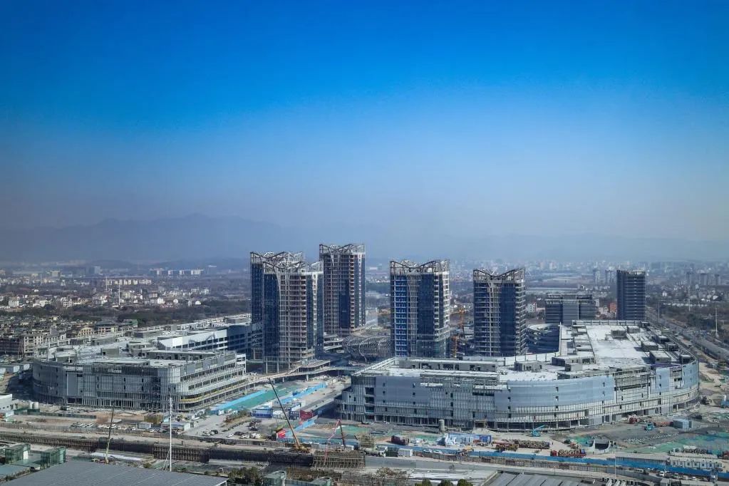圖為2025年1月13日拍攝的建設(shè)中的義烏全球數(shù)貿(mào)中心。新華社記者江漢攝